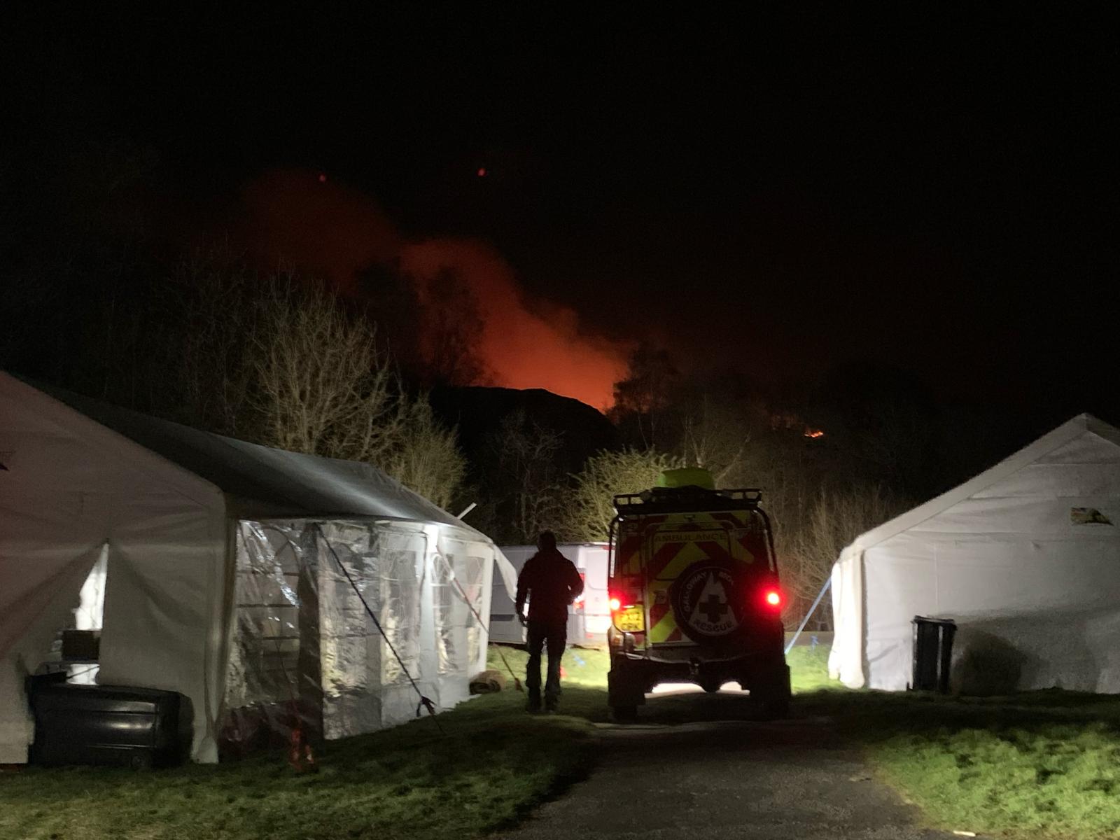 At 9am we were allowed back into the park with Galloway Mountain Rescue to take down the tents and clear the site. It was very windy and the tents were in a bit of a state however we had enough manpower to take them down and pack them into the trailers. We headed out and home to unload the trailers, freeze all the soup and cakes, sort out kit and everything. It really sunk in during the day as the weather was wonderful and it was so sad to be thinking that we would have been setting the Heart of Granite race off and then the Bruce's Crown race. Overnight it was clear and cold and then this morning dawned lovely again. Only even at home, 10 miles from Merrick the smoke was coming over and the air smelt acrid. It's awful to see the photos and video's of the huge devastation and beautiful hills of the park, burnt and black. I've collated a few photos which show the extent of the fire and events of the weekend Gallery 2025 Fire photos