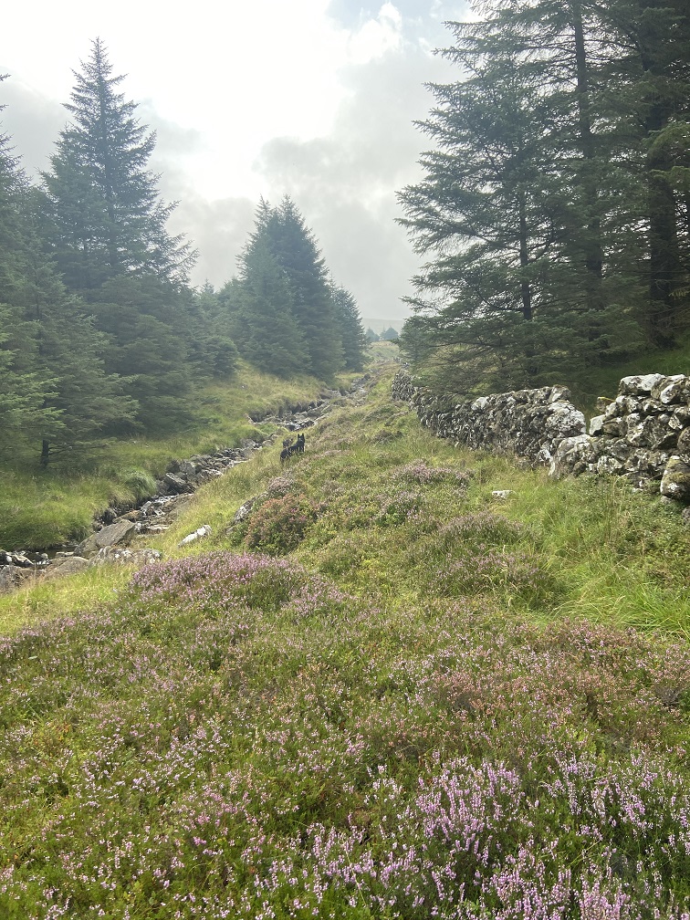 And then the Ascent of Darrou. In August when I did the recce I went along the forest track to the standing forest where there is a track leading into the forest. That ends and you head up the forest to the end edge where an old forestry track traverses back towards the stream / quarry. I followed this and crossed the stream. It was then pretty tussocky up to the plateau. Looking at it now you could stay on the right of the stream in the bracken which would be better. In August the bracken was too high.