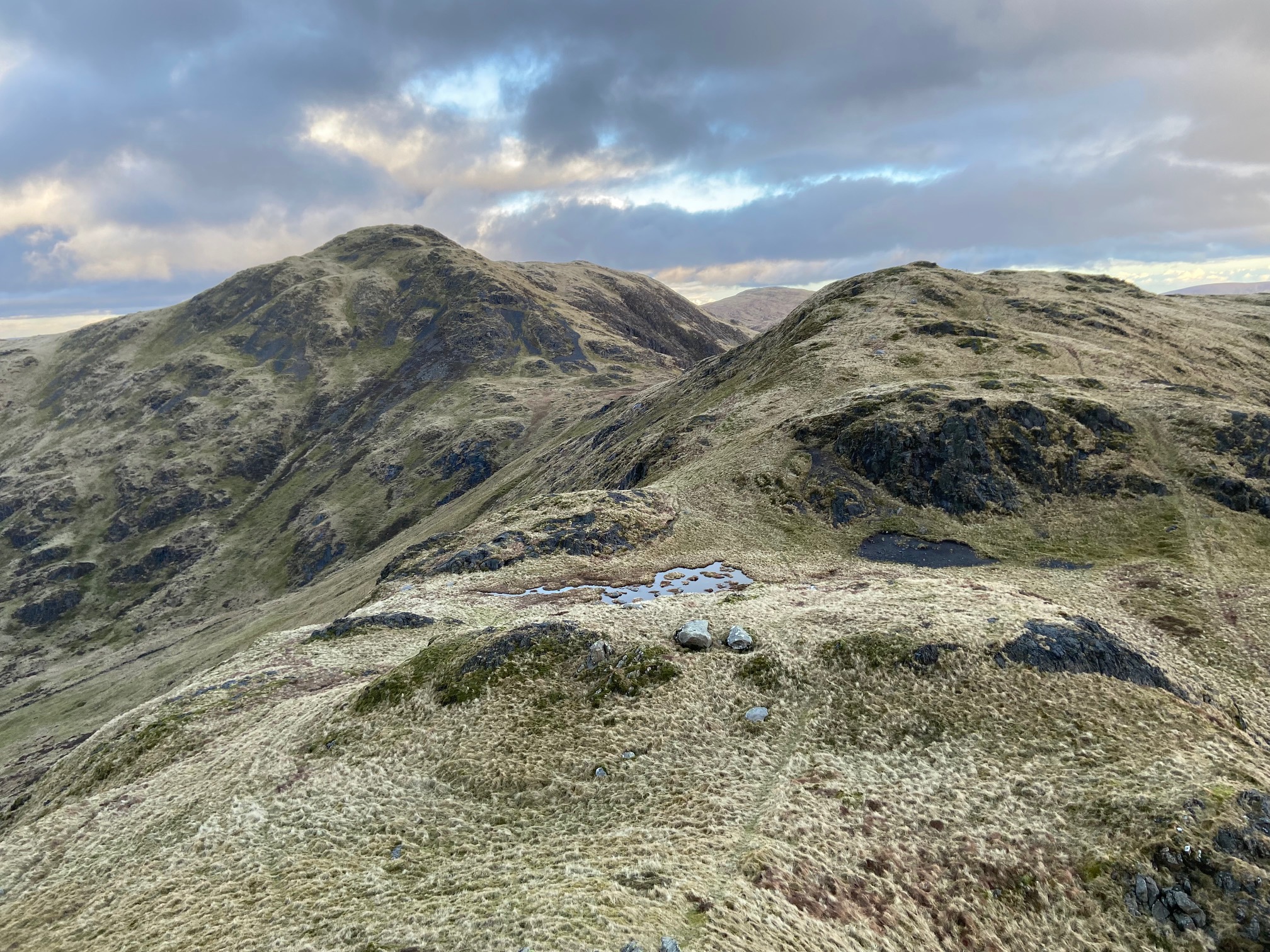 Photo on the right is coming off Bennanbrack looking at Curelywee (highest left). You can contour Scars of Milldown by going left after the lochan.